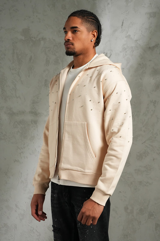 Pull zippé à capuche à strass