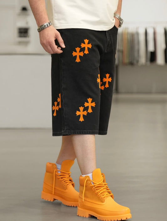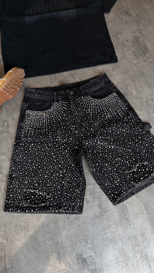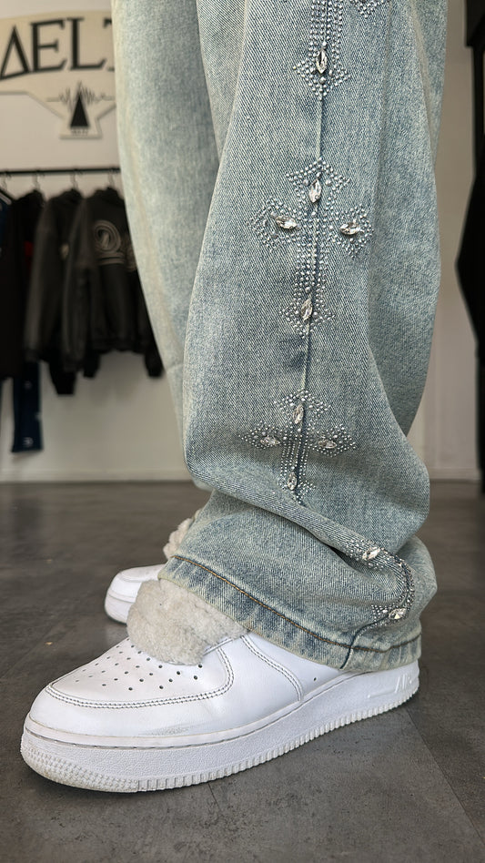Jean Loose Délavé avec Perles – Détails Chaîne Bleu/ Noir