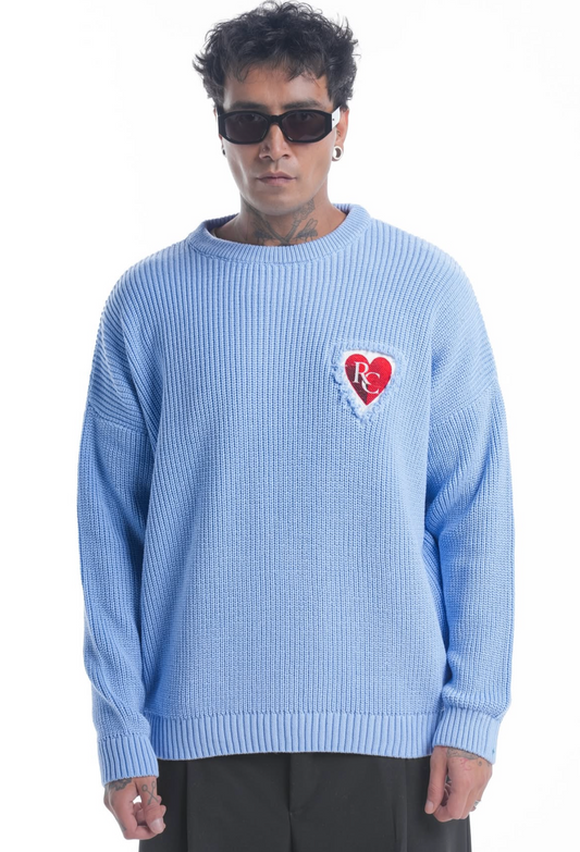Pull Bleu Ciel Riches Paris Heart Knit