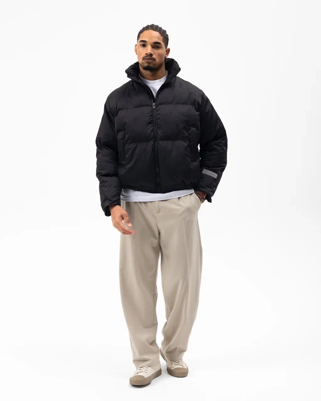 Son rembourrage épais assure une isolation optimale sans compromettre le confort, tandis que sa coupe légèrement oversize ajoute une allure affirmée. Le col montant et les poignets ajustés garantissent une protection maximale contre le froid. Une étiquette discrète sur la manche apporte la touche signature du modèle.