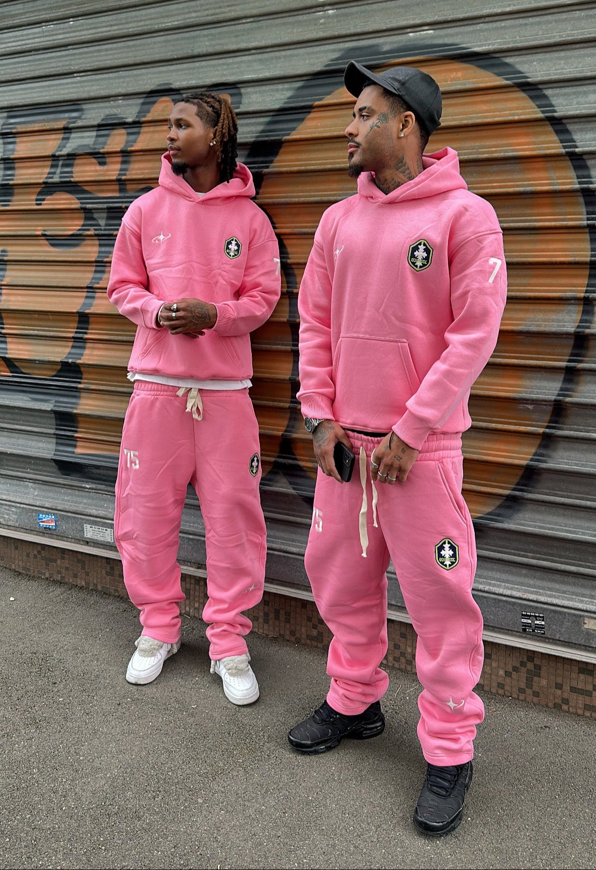 Le sweat à capuche arbore une coupe oversize moderne avec poche kangourou, cordon de serrage ton sur ton et un écusson brodé sur la poitrine. Le pantalon, lui, présente une taille élastiquée avec cordon, ainsi que des détails brodés : le logo sur la cuisse et le chiffre “75” en clin d’œil au style urbain parisien.