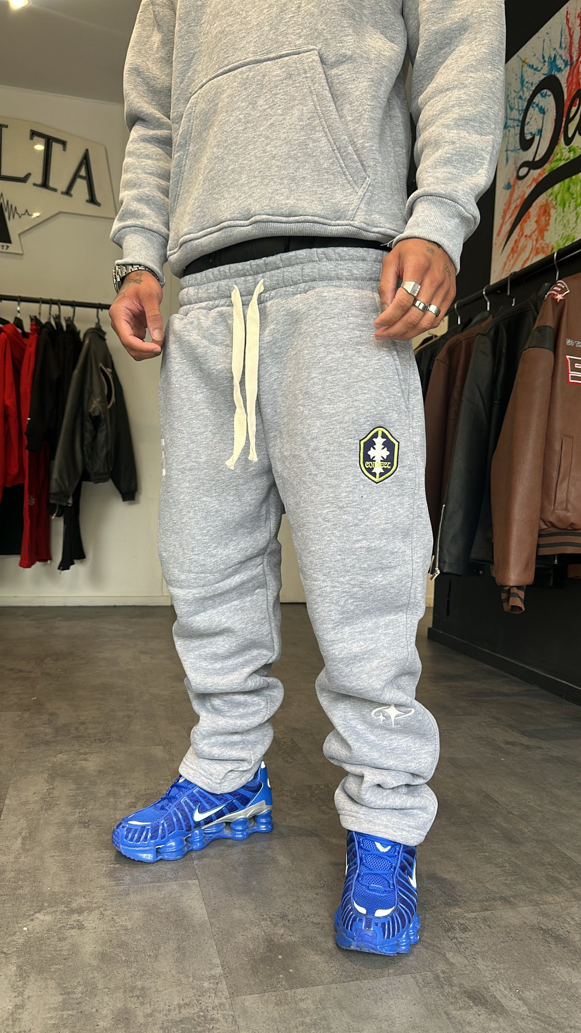 Un ensemble streetwear premium alliant confort et caractère. L'ensemble se compose d’un hoodie et d’un pantalon de jogging assorti, confectionnés dans un coton épais et doux pour un tombé structuré et un confort maximal.