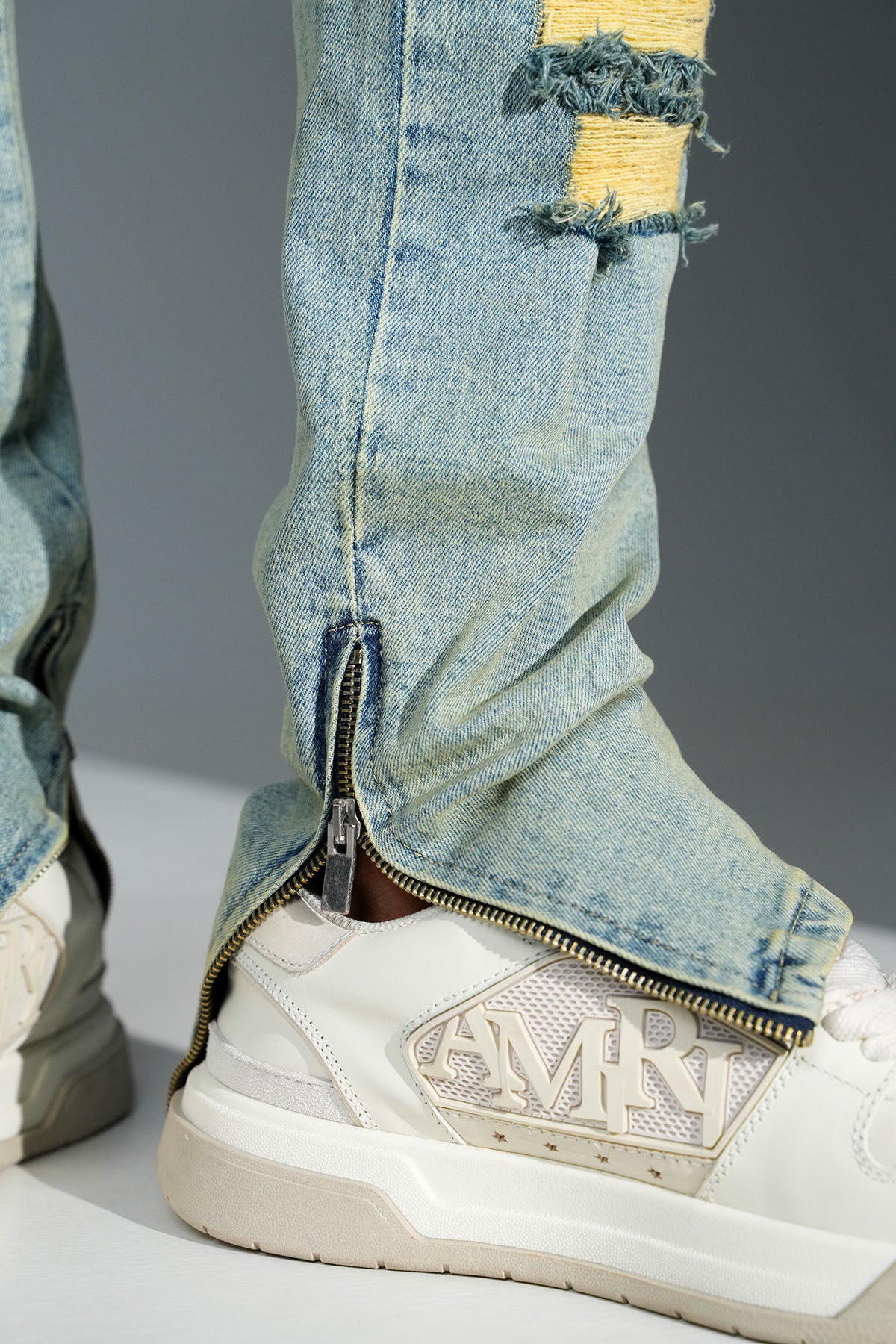 Jean Bleu Délavé Destroy à Doublures Jaunes